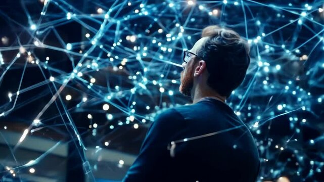 A real estate expert engages with advanced artificial intelligence tools, showcasing a blend of technology and human expertise.