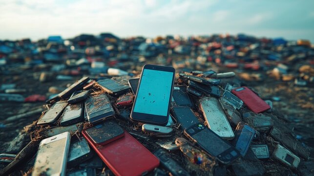 Pile of Discarded Mobile Phones Highlighting E-Waste and Environmental Concerns