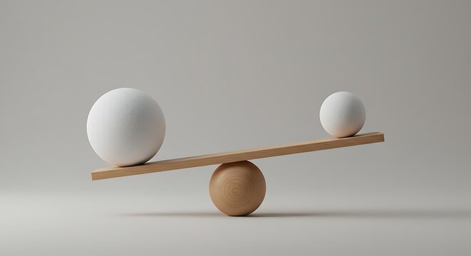 Wooden Seesaw 3d illustration isolated on white background. balancing on seesaw 3d render. 3d illustration