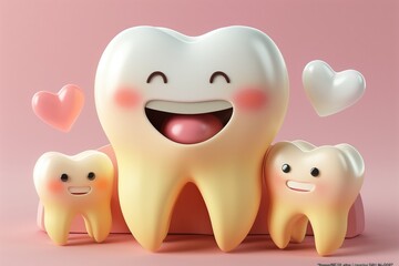 A 3D tooth character holding a magnifying glass, inspecting its own shiny surface