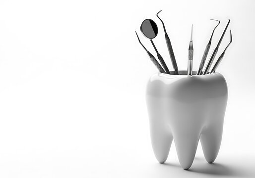 Cartoon Tooth with Dental Tools Illustration Promotes Health and Hygiene