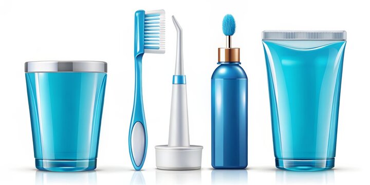 Blue Toothbrush, Mouthwash, Floss and Toothpaste Set, dental hygiene, oral care, teeth cleaning