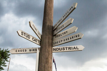 Wooden telegraph pole with directional signs