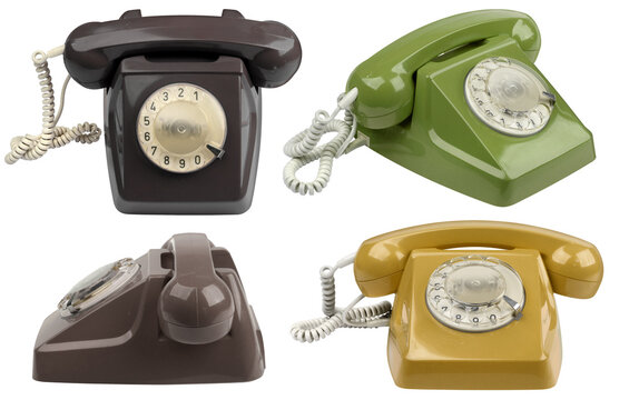 Vintage rotary telephones in bright pastel colors retro charm transparent background