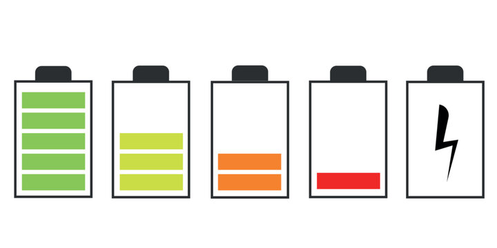 Battery indicator icons. Battery stack indicator vector isolated on white background. Battery stack icon.phone battery icon. Vector illustration