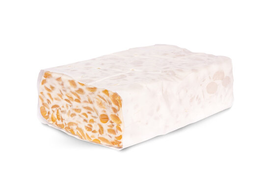 Tempeh is a typical Indonesian food made from fermented soybeans. tempeh isolated on white background