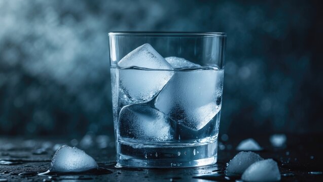 Close Up Of Ice In A Glass For Background.. With Empty Copy Space For Text