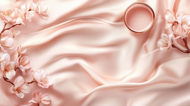 A luxurious, realistic design template featuring delicate pink silk fabric, ideal for beauty and fashion products, showcasing a sense of elegance and sophistication.