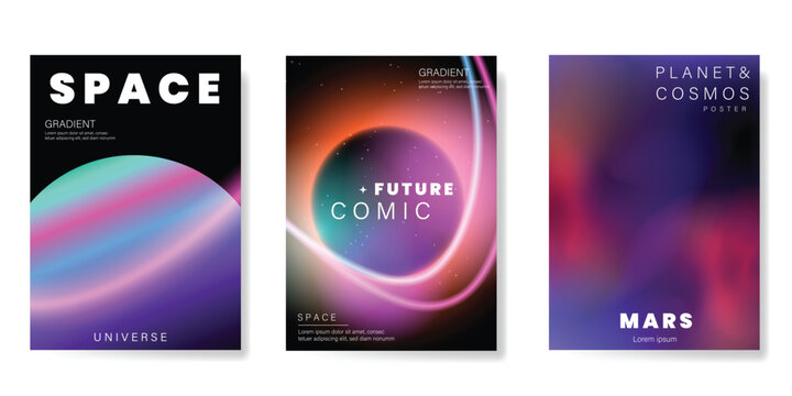 Planet and galaxy Space card vector set. Solar system with galaxy planets, asteroids, jupiter, saturn, mars, moon, ring line solar. Cosmic design for flyer, brochure, background, poster, cover.