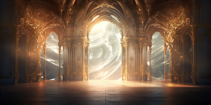 AI Generated. AI Generative. Baroque heaven inner space gate. Religion architecture temple entrance god sun meet fantasy gothic vibe. Graphic Art
