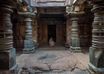 Beautiful Inner view of Virupaksha temple with pillars hampi karnataka india. unesco world heritage site