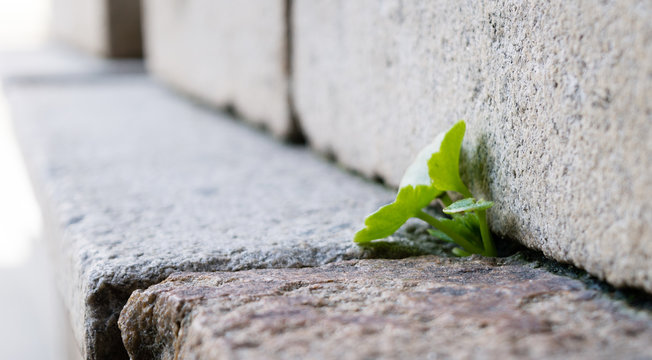 A plant defying odds, growing through a crack in the ground, showcasing the resilience and tenacity of nature in challenging environments.