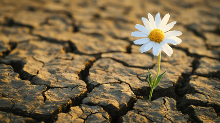 Resilient seedling thriving amidst cracked earth symbolizing nature's tenacity