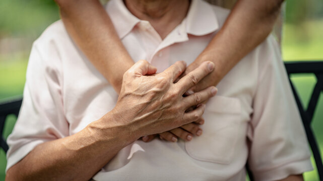 Elderly hands share a tender embrace and support encouraging old people symbolizing enduring love connection and devoted partnership in a serene outdoor environment, Elderly health care concept