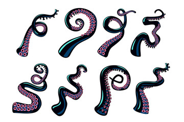 Octopus tentacles set. Vector design elements collection on isolated white background. Cartoon style color clip art.