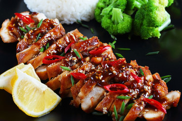 Plate of teriyaki chicken with rice