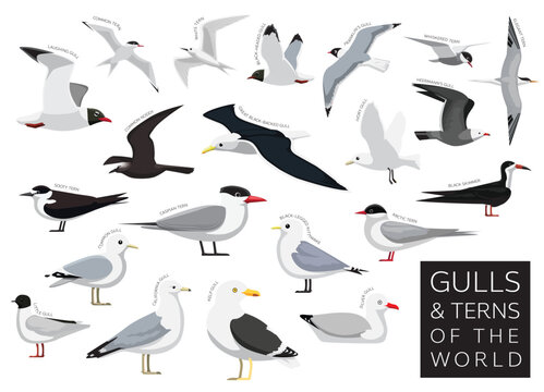 Bird Gulls and Terns of the World Set Cartoon Vector Character