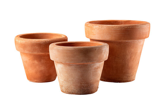 Stylish terracotta pots arranged against a neutral background, great for natural and minimalist decor projects.