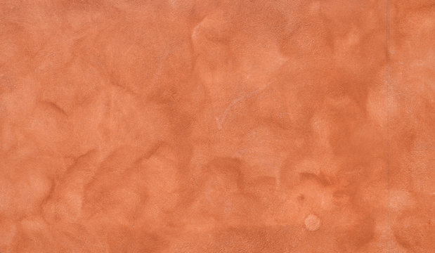 Full frame image of textured stucco in bright terracotta color. High resolution texture of plaster for 3d models, background, pattern, poster, collage, gift wrap, wallpaper etc.