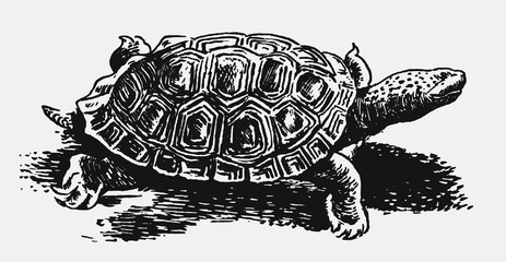 Threatened diamondback terrapin, malaclemys terrapin in side view. Illustration after a vintage engraving from the 19th century