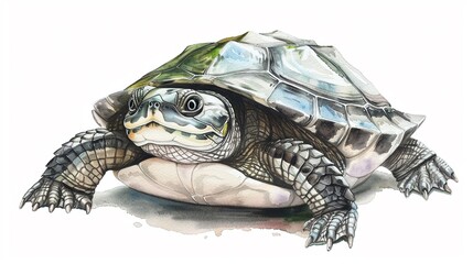 Diamondback terrapin exploring its habitat,Clipart, watercolor illustration, Perfect for nursery art The style is hand  drawn, white background
