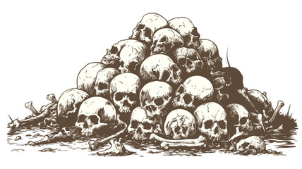 Sinister Skull Pile Depicting Terrifying Horror Scene for Design Projects