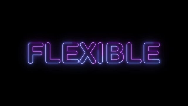 flexible symbol. concept words flexible bright glowing neon effects, vibrant and colorful text animation on transparent background