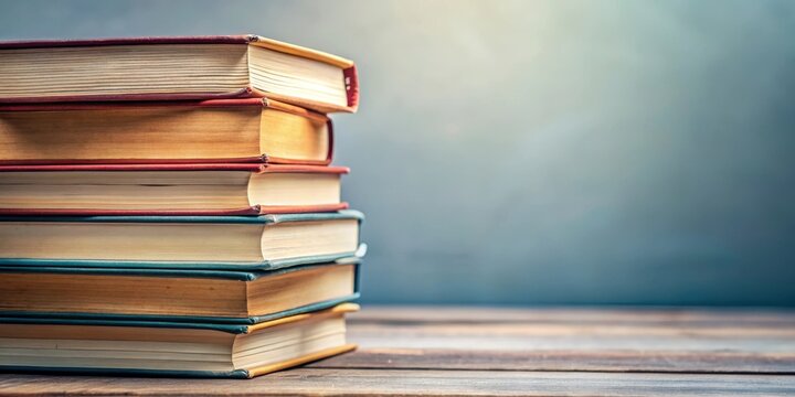 Closeup shot of a stack of books , education, reading, literature, library, knowledge, academic, study, learning, textbooks