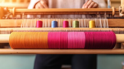Young fashion designer skillfully cutting fabric in a vibrant workspace