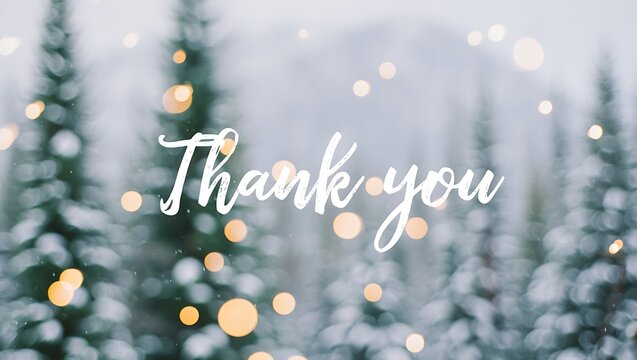 Thank you card with snowy winter forest and bokeh lights