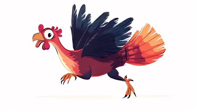 Thanksgiving holiday promotion theme. A vibrant illustration of a rooster in midflight, with its wings spread wide. The rooster is painted in a mix of red, orange, and black hues.