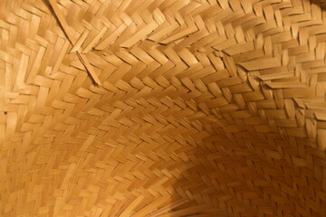 Cesto circular de palha seca amarelada, interior de cesta trançada artesanalmente