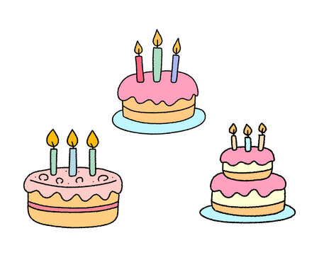 초가 있는 귀여운 생일 케이크 일러스트