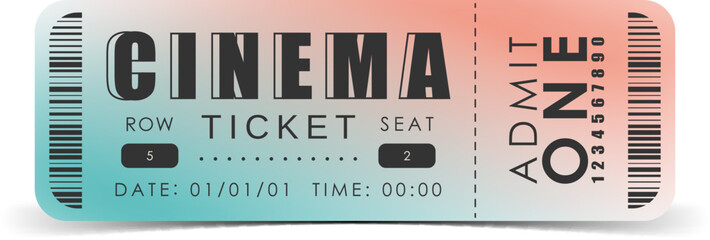 Cinema ticket design. Modern elegant ticket card illustration template. Vector illustration.