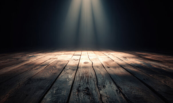 Dramatic stage lighting illuminating a polished floor, creating a vibrant atmosphere for performances