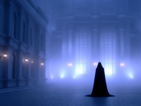 Elegant red stage curtain slightly open, revealing mysterious dark background. classic dramatic theatrical backdrop for show or event