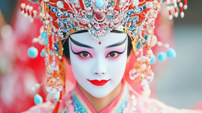 Vibrant peking opera performer in ornate costume and makeup for cultural art posters