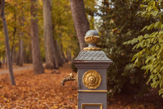 2. A rustic wooden podium in a vibrant garden, with a blurred backdrop of green foliage, providing an ideal setting for presenting organic products in a spring or summer theme