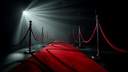 Red carpet and velvet rope setup with spotlight in a luxurious dark setting for awards theme