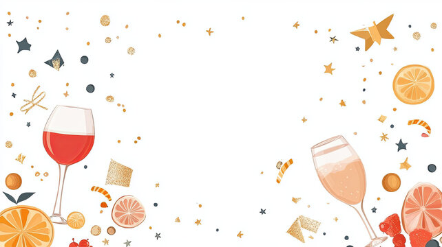 Celebrate with festive background featuring colorful drinks, citrus fruits, and decorative elements. Perfect for invitations or party themes, this design adds cheerful touch