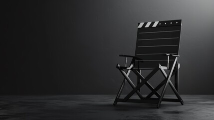 Black and white image of a director's chair with film valve on a yellow background is perfect for film industry themed articles, magazine covers or film festival advertisements.
