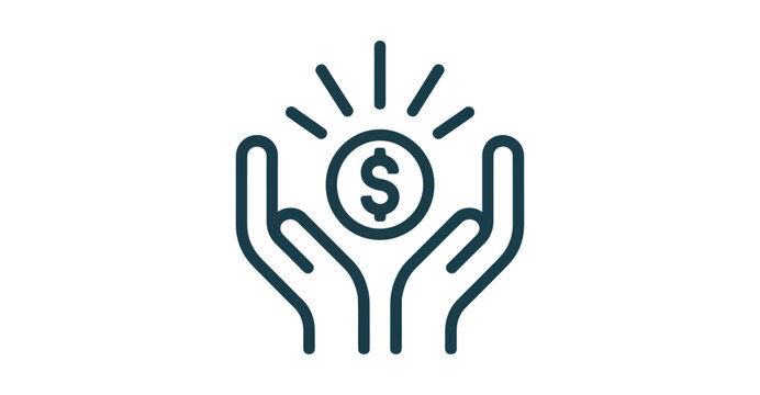 Icons representing charity and donation activities with heart and volunteer themes