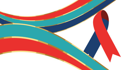 Vibrant abstract design featuring graceful red and blue ribbons, symbolizing unity and support, with a prominent awareness ribbon advocating for important health and social causes