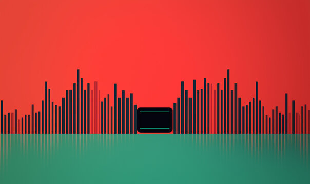 Mockup template for music player and display application charts for the most popular songs. Music player template with rusty brown theme and maze pattern with white background