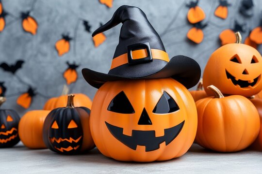 Autumn themed banner featuring an adorable cat in a knitted scarf surrounded by fall elements on a beige background Perfect for autumn promotions and cozy vibes