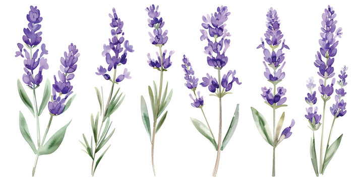Watercolor beautiful purple lavender flower stems floral set collection design resources elements