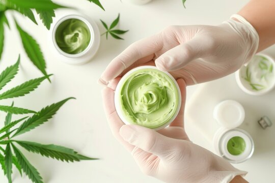 Medical cannabis cream being applied to a patient's skin, focused and therapeutic environment, Medical Cannabis Treatment, concept of topical relief