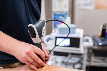 shockwave therapy to relieve pain and promote healing of injured tendons on leg