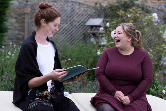 Caucasian woman receiving emotional support from counselor