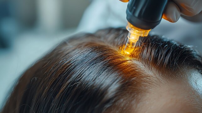 Close-up of scalp treatment with advanced LED therapy for hair rejuvenation.